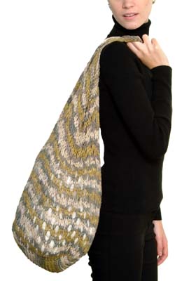 Materials: 2 skeins Fantasy Naturale cotton, straight needles: sizeUS 10½ for the base; 24” circular needle- size US 15 for the body of bag, 1 stitch marker.