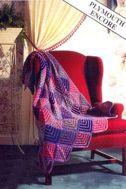 Materials: 1—100g ball each of 6 colors of Encore Worsted. Small throw shown in color Set A, large throw shown in color set C
