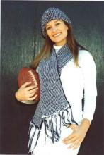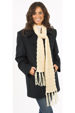 Encore Worsted: 8 – 100g balls, shown in color 475.Gauge: 10 sts =4” over garter stitch with a double strand of yarn.